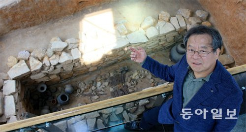 “주·부곽이 일렬로 배치된 대형 목곽묘가 사상 처음으로 확인됐는데, 지표에서 2~3m 밑에서 노출된 11호분과 22호분은 완전한 처녀분이었어요. 특히 두 고분의 덮개돌 1개의 무게가 3t이나 됐고….”